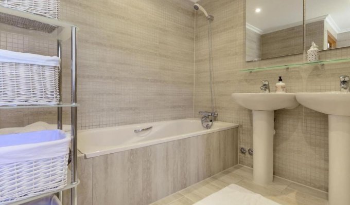 Au rez-de-chaussée, deux chambres disposent chacune de leur propre salle de bains avec douche et lavabo. La villa comprend également des toilettes invités, une buanderie et des rangements. Toutes les chambres sont climatisées.