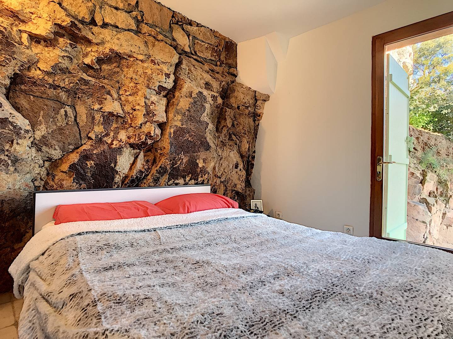 * Chambre 2 : lit double 140 cm, accès direct à la piscine.