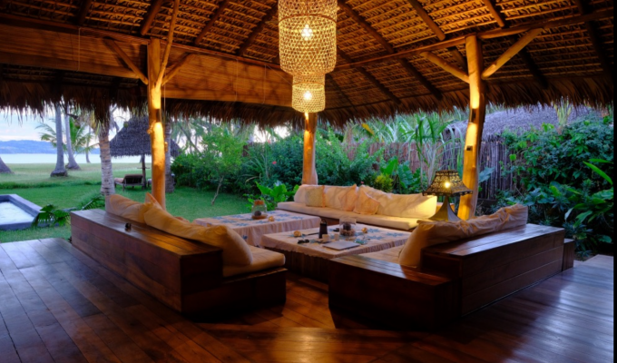 Nosy bé Madagascar sur la presqu'ile de BAOBAB (endroit sécurisé) cette villa pleine de charme située en 1ere ligne à 25m de la plage, vous permettra de passer de superbes vacances !