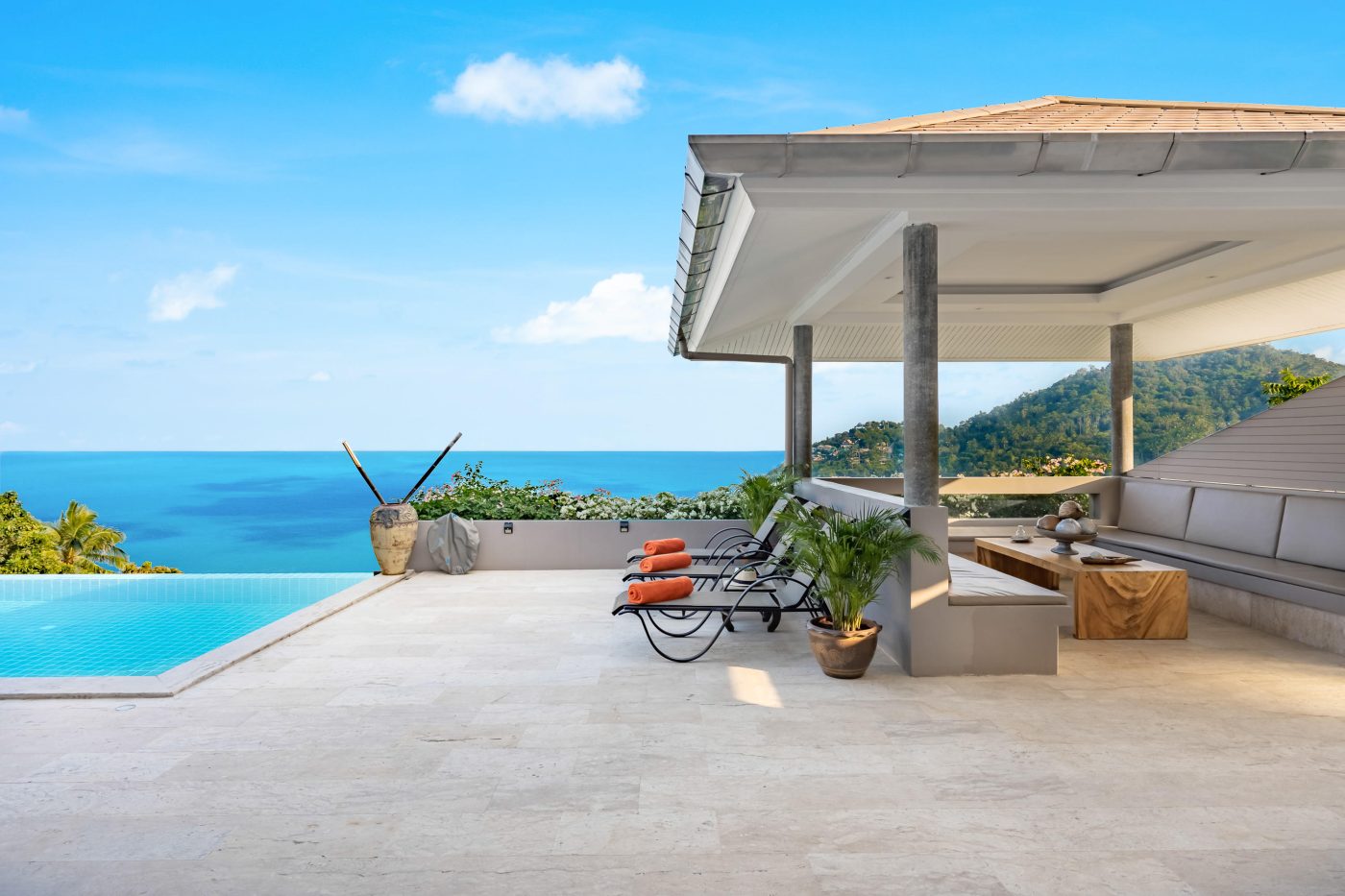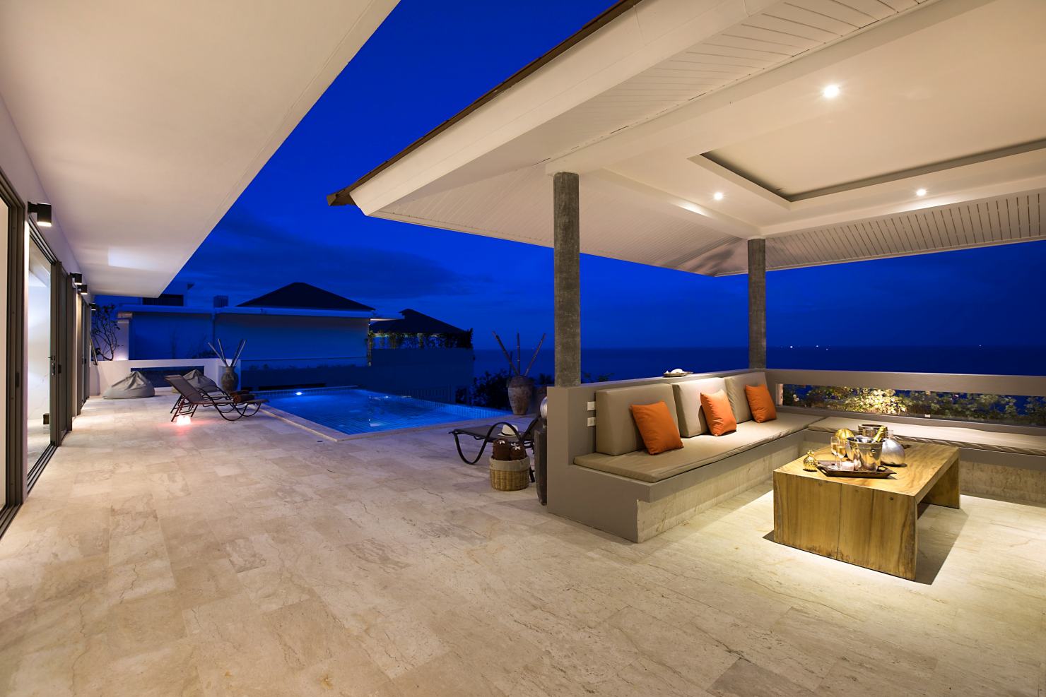 La Villa propose une grande piscine à débordement surplombant la baie de Chaweng, ainsi qu’un espace lounge de style Sala Thai et une vaste terrasse avec vue sur la mer.