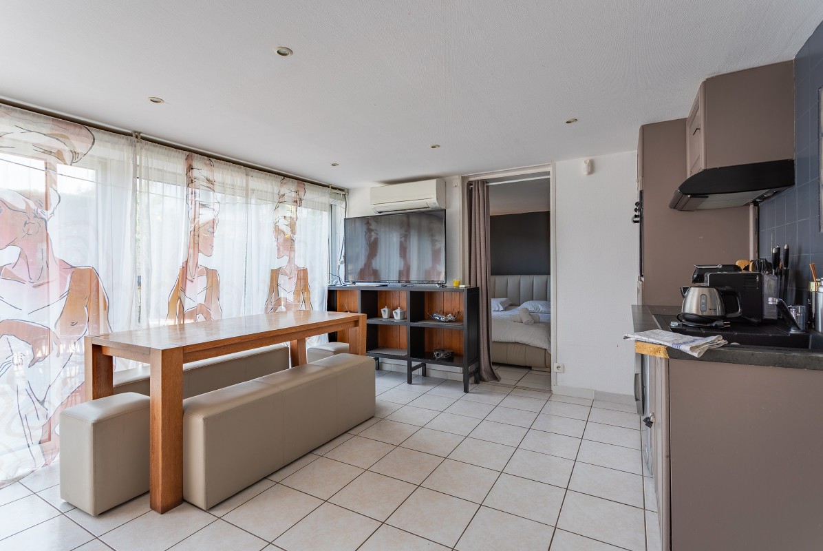 Au rez-de-jardin, 5 appartements équipés soit en studio soit en 2 pièces pouvant accueillir chacun 2 personnes et une salle de bain avec wc dans chacun, une grande terrasse longeant la propriété.