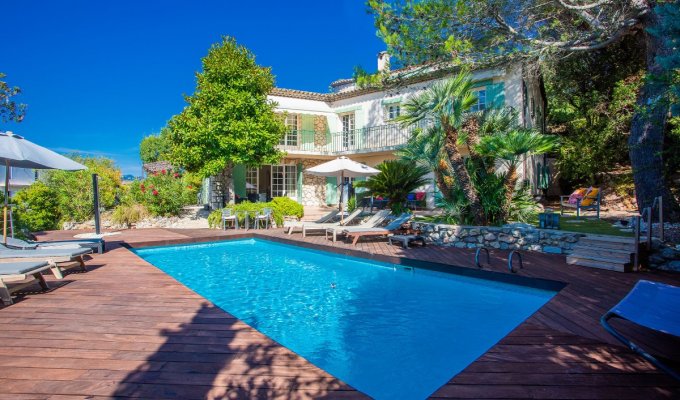 C'est une villa de style provençal calme de 220 m2 nichée dans un jardin de 1700m² et pouvant accueillir jusqu'à 16 personnes, toute proche de Cannes et Mandelieu ainsi que des plages (10 minutes en voiture) - Belle piscine privée piscine de 10x 5, et 1m20 x 2m50 de profondeur
