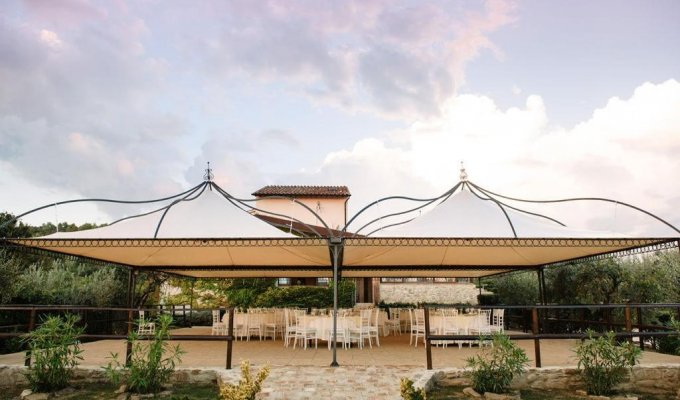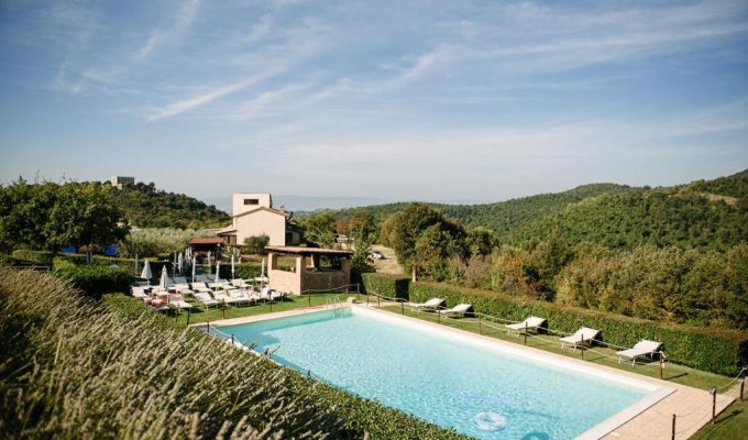 Le domaine est situé au cœur de l'Ombrie. Il bénéficie d'un emplacement stratégique pour rejoindre des villes comme Assise et Pérouse, Todi et Spolète, ou de petits villages comme Montefalco, Bevagna et Spello. Un chemin de terre mène à ce domaine privé de plus de 200 hectares, comprenant une ferme, une exploitation agricole et le château éponyme. La ferme accueille des hôtes du monde entier depuis plus de 20 ans, tandis que le château accueille cérémonies, événements et mariages dans ses splendides salles. La ferme produit une huile d'olive vierge extra biologique de haute qualité, qui est à la base des plats préparés par le chef du domaine au restaurant de la ferme et lors des événements au château. Les hôtes bénéficient d'un large éventail de services : chambres, appartements, piscine, restaurant, jacuzzi, salle de sport, ferme avec animaux, ping-pong, aire de jeux pour enfants, VTT, billard, Wi-Fi, solarium, espace barbecue, parking couvert et bien plus encore. De nombreuses expériences sont également à vivre sur le domaine et au-delà : cours de cuisine, équitation, randonnées pédestres et VTT, dégustations de vins, visites de caves et de moulins à huile, chasse à la truffe, rafting et trekking.