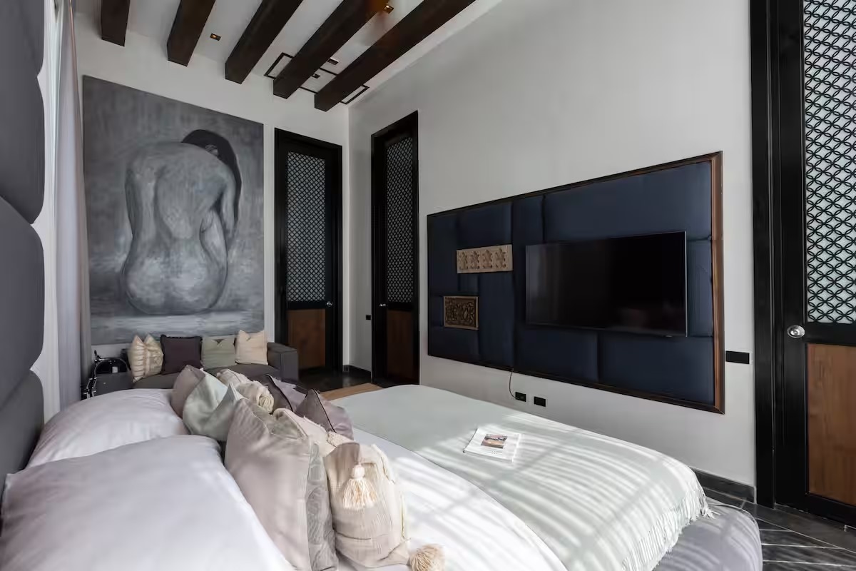 À l’intérieur, les finitions haut de gamme se marient à un style asiatique bohème, avec des œuvres d’art soigneusement sélectionnées, des pièces artisanales et des textures chaleureuses. Les chambres, toutes équipées de lits king-size et de salles de bain attenantes, garantissent un repos absolu.