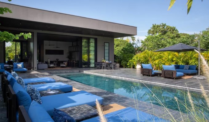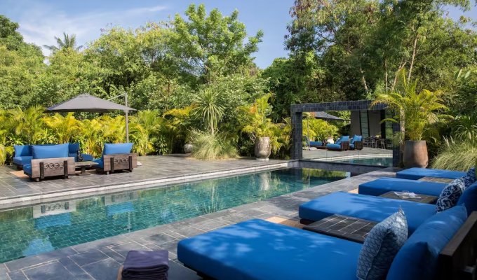 Chaque villa dispose de sa propre piscine : 15 m pour la villa 4 chambres et 12 m pour la villa 3 chambres, au cœur de jardins tropicaux avec transats et zones ombragées