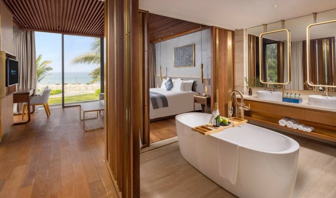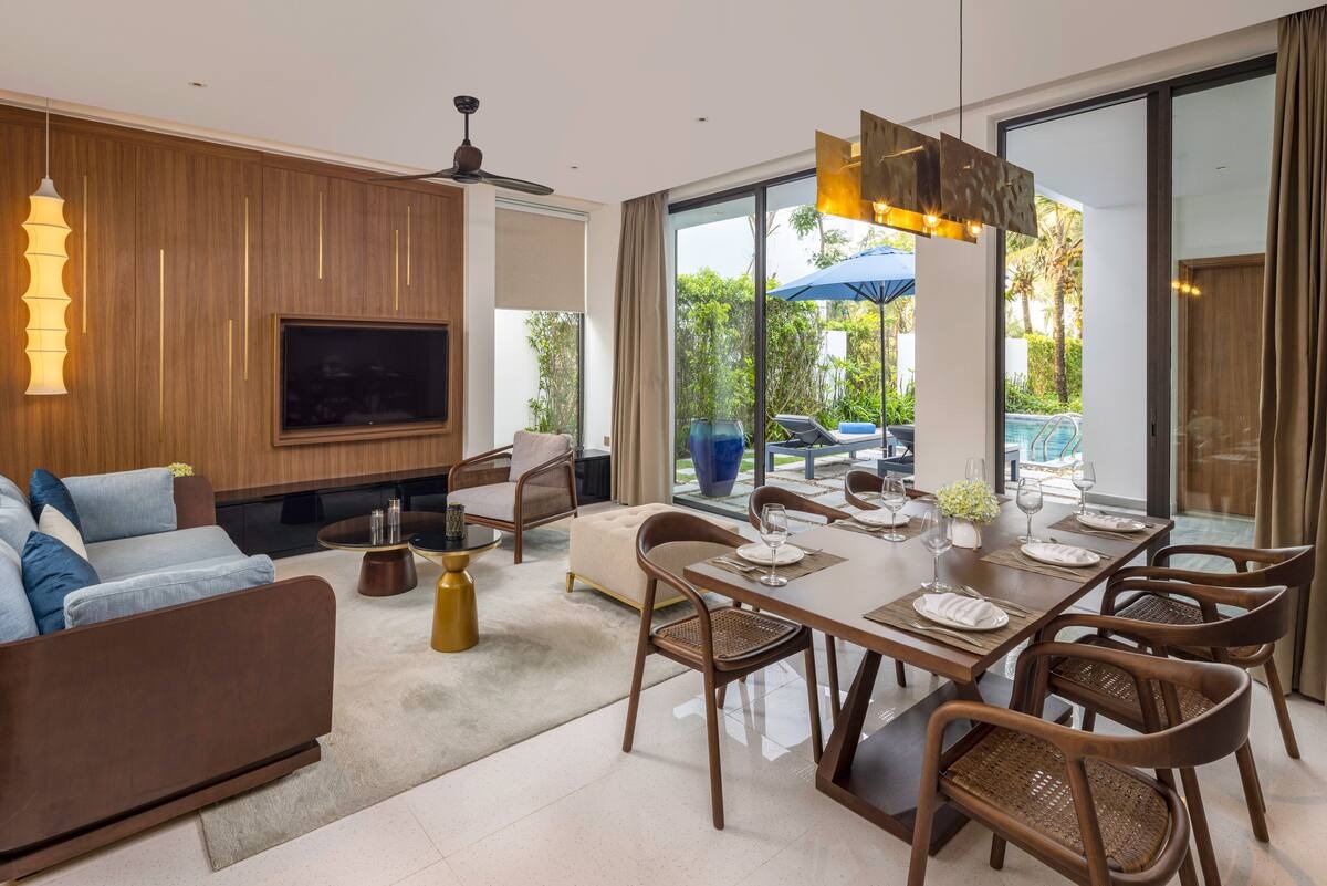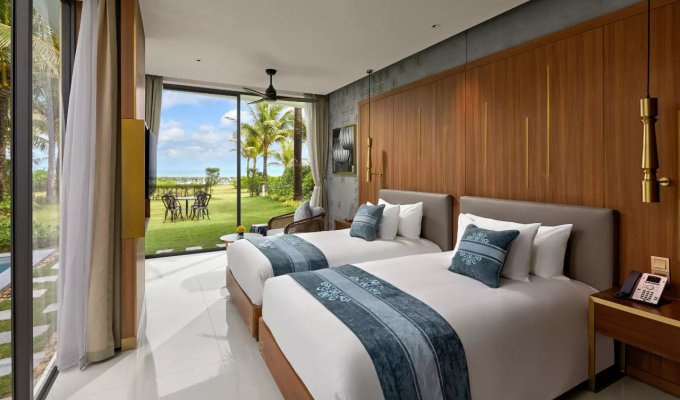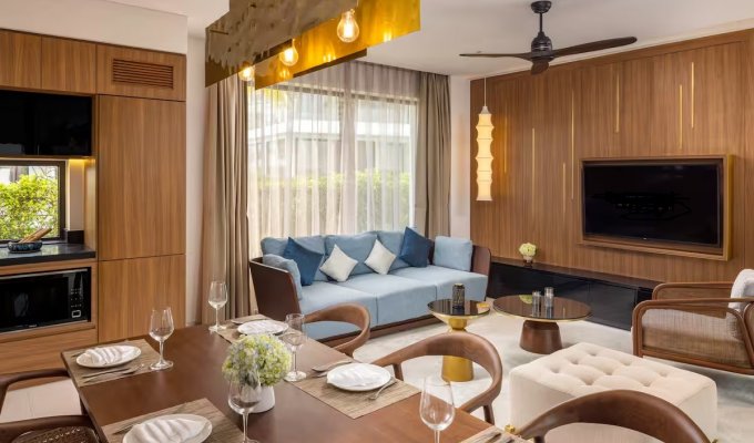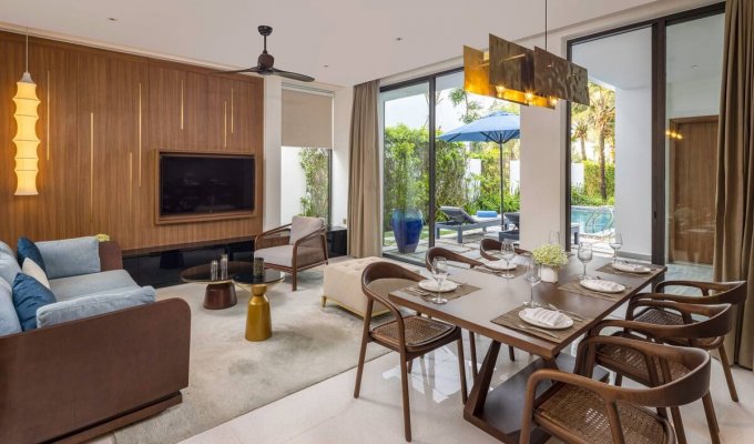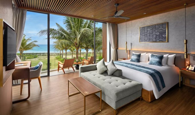 Les villas sont un excellent choix. Bel emplacement à côté de la mer, transport pratique, situé sur le chemin de Hoi An depuis Da Nang. Juste à côté du principal complexe de divertissement du Vietnam : le parcours de golf Cocobay et Mongomelink. Le complexe dispose de 72 villas au design moderne, élégant et luxueux répondant à des normes 5 étoiles : piscine 4 saisons, restaurant, centre de conférence, salle de sport, sauna, spa, bar...