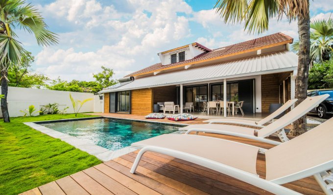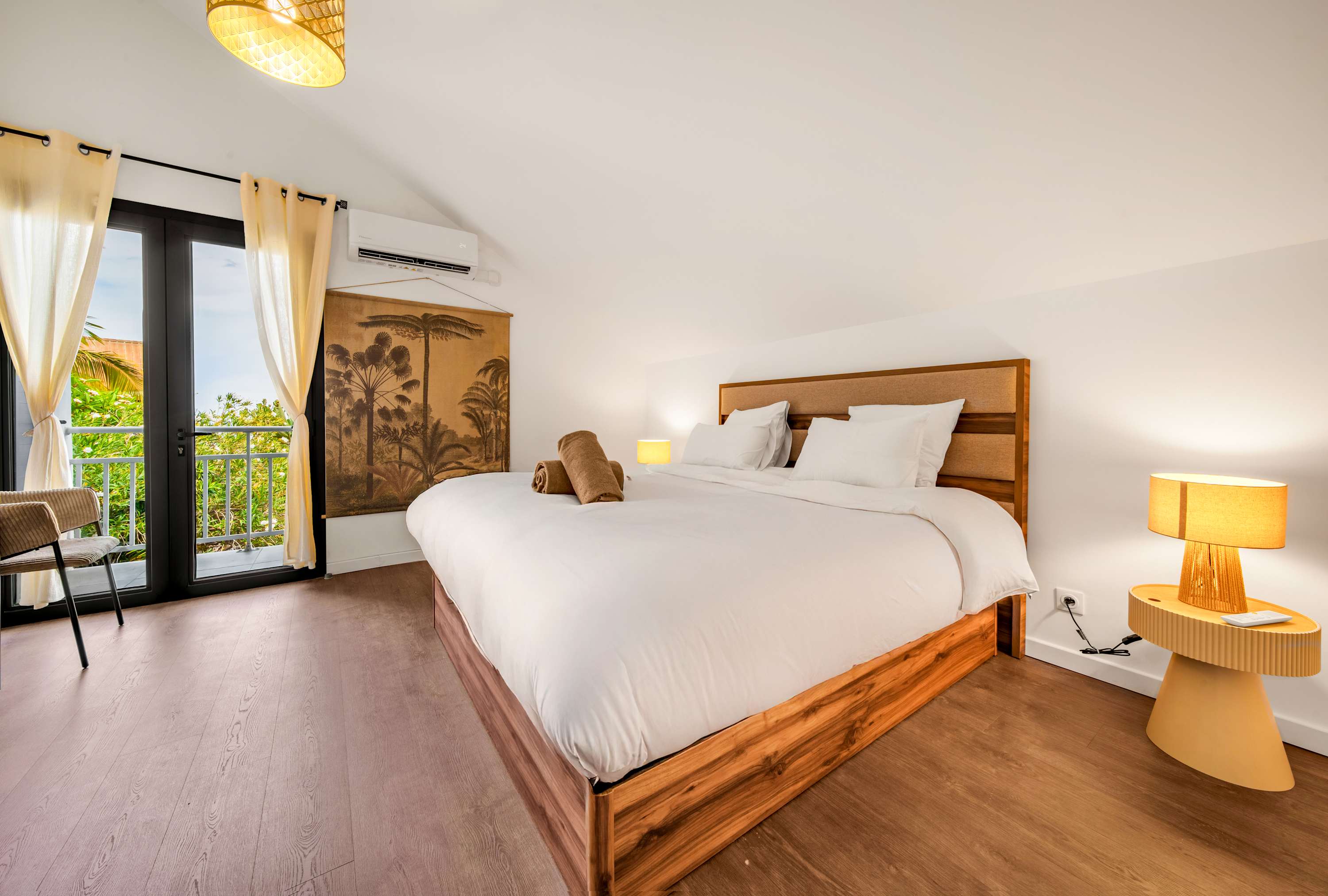 Dès l’arrivée, en poussant le portail, vous découvrez une belle piscine et un jardin tourné vers l’extérieur, avec une vue dégagée sur l’esplanade de Boucan Canot.