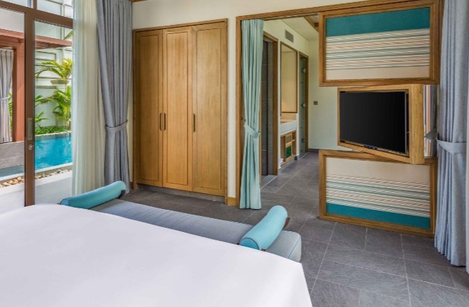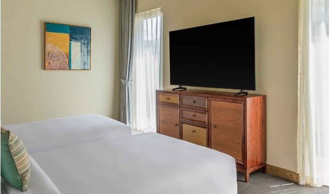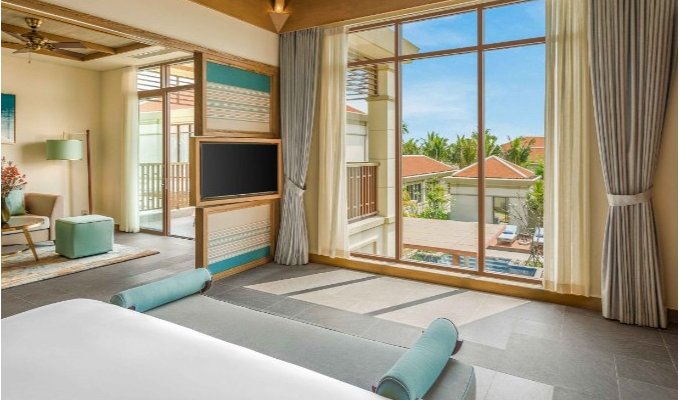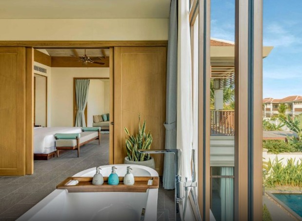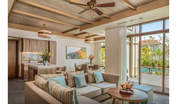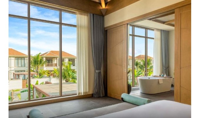 Nichée le long de la côte immaculée, notre magnifique villa en bord de mer avec cinq chambres représente l’apogée du bonheur côtier. Située sur fond de la plage scintillante de Non Nuoc, la villa offre un sanctuaire sans égal. Elle comprend quatre chambres avec lits king-size et salle de bain privative, ainsi qu’une chambre avec lits jumeaux, complétées par de vastes espaces de restauration et de vie. De plus, un espace de détente privé de 150 m² et une piscine offrent l’endroit idéal pour se ressourcer près de la plage. Cette villa exclusive en bord de mer à Da Nang, fusionnant harmonieusement du lit à la plage, est conçue pour des groupes ou des familles exigeants à la recherche d’une expérience privée et mémorable.