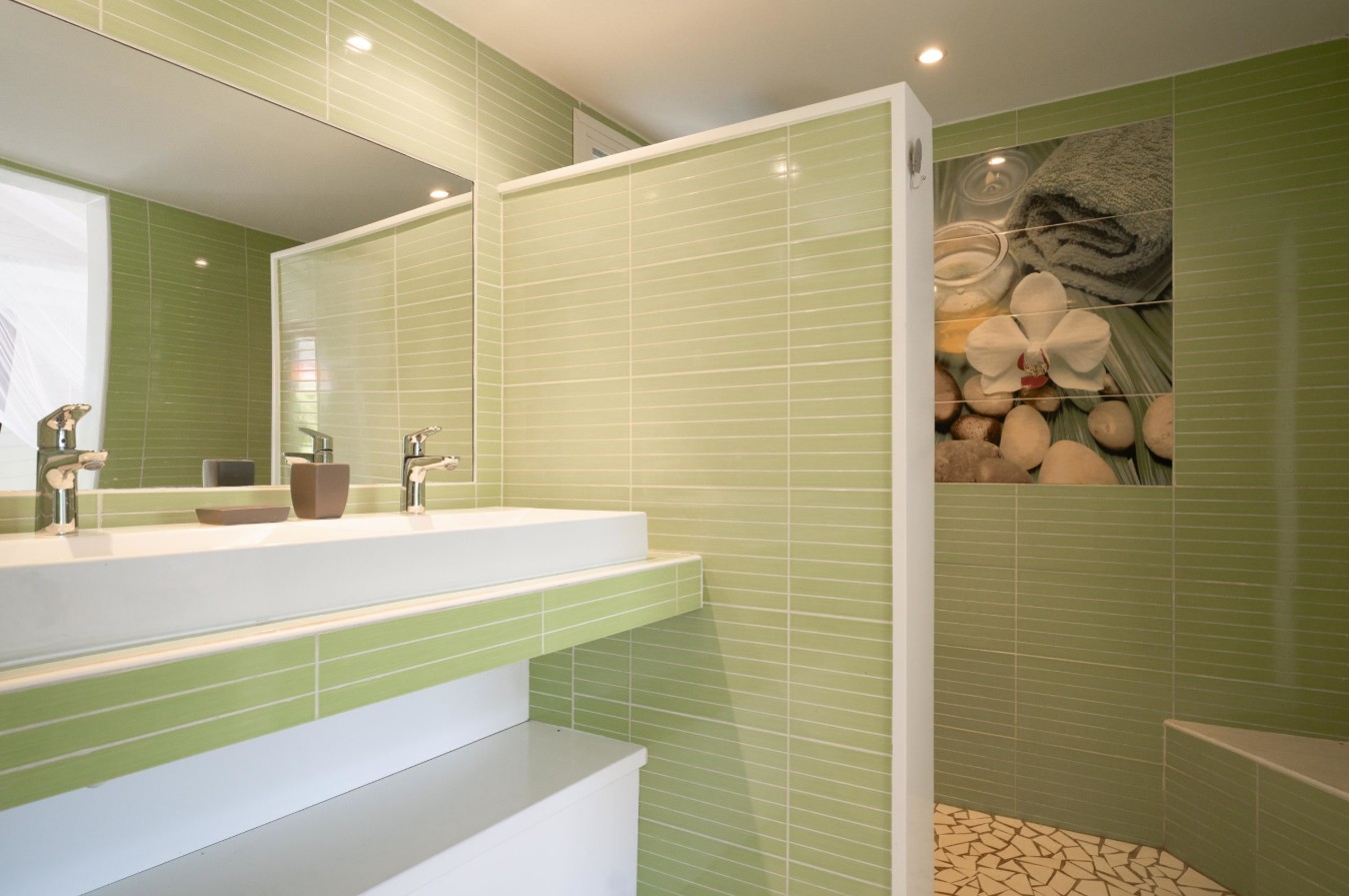 4 salles d’eau avec WC, dont une située dans un bungalow mitoyen à la villa