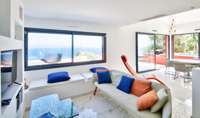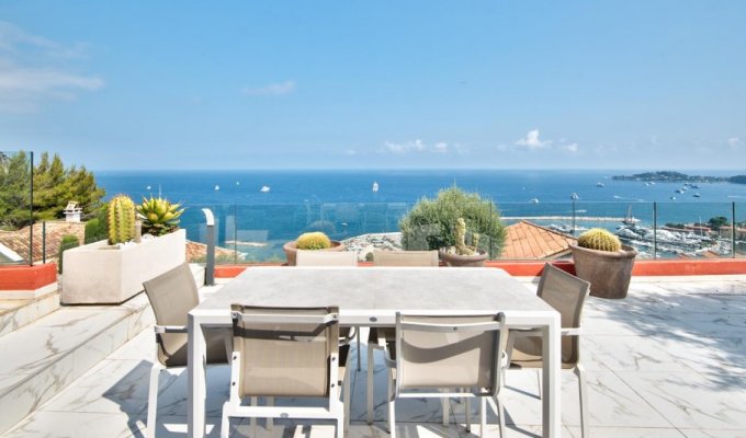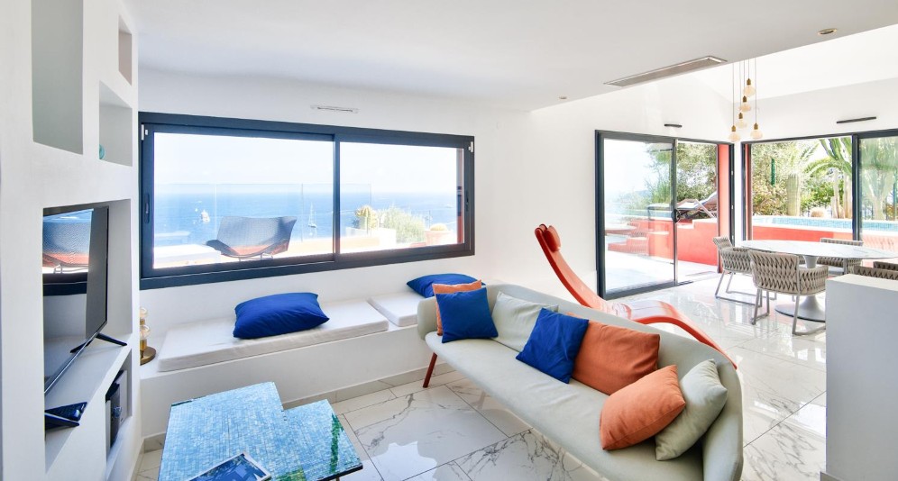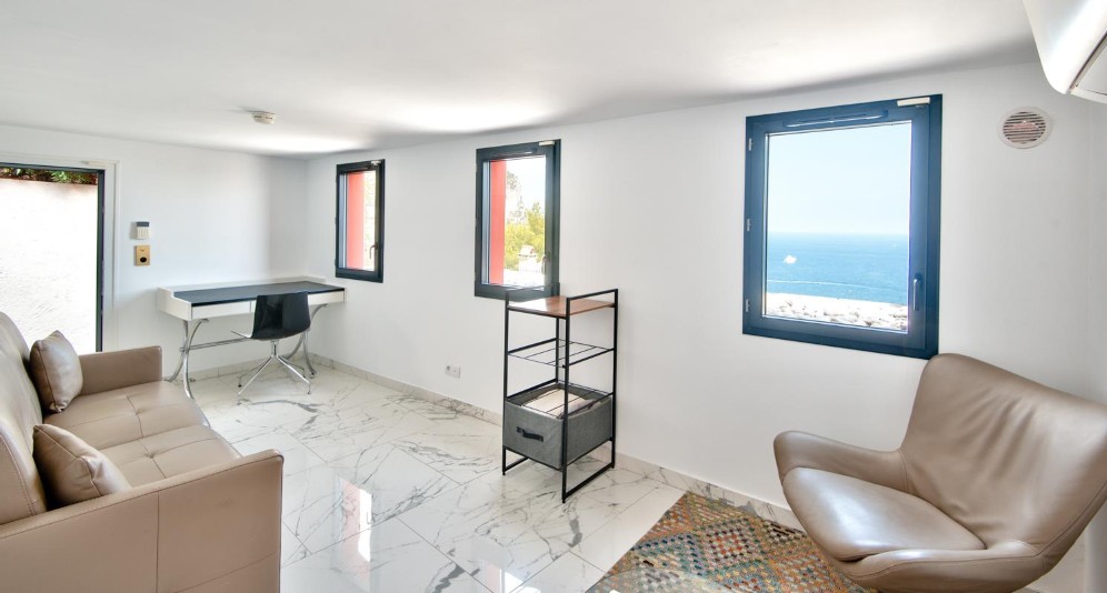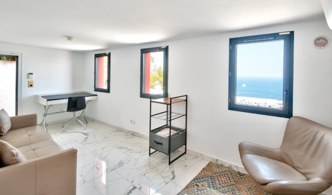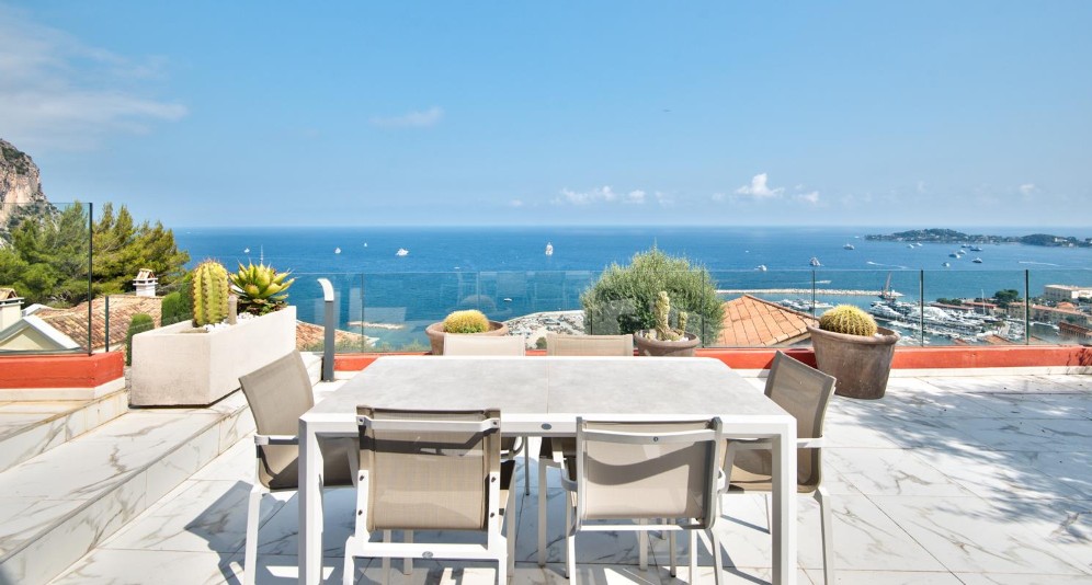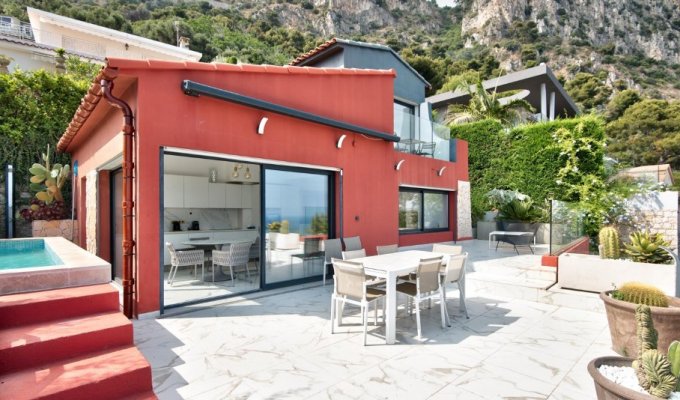 LOCATION SAISONNIÈRE – à Beaulieu-sur-Mer. Villa moderne avec vue mer panoramique dans un quartier résidentiel en hauteur, cette villa contemporaine récente d'environ 110 m² offre une vue spectaculaire sur la baie, dans un cadre calme et privilégié.Elle se compose d'un séjour lumineux avec cuisine ouverte, ouvrant sur une grande terrasse ensoleillée et une piscine (env. 5 m x 2,4 m). Deux chambres avec salles de douche, dont une suite parentale à l'étage avec terrasse et vue mer. En rez-de-jardin, une troisième chambre indépendante avec salle d'eau. Buanderie en sous-sol.