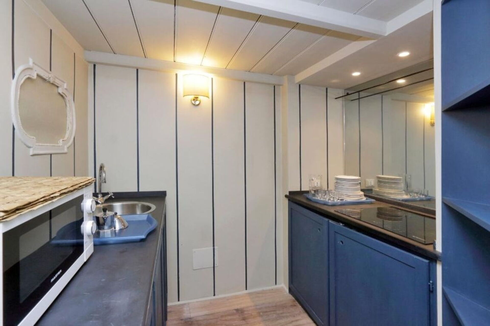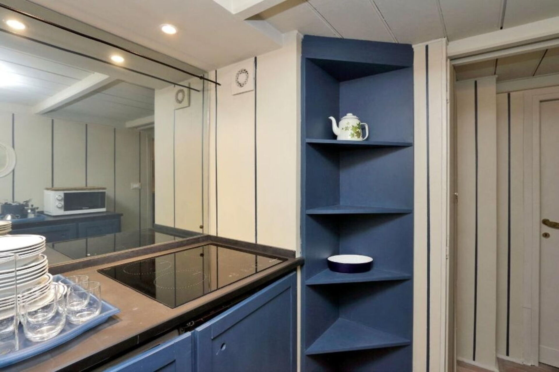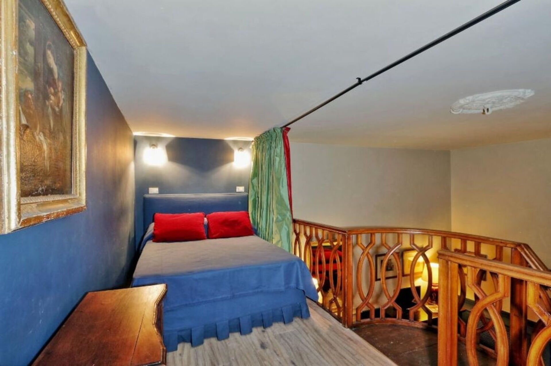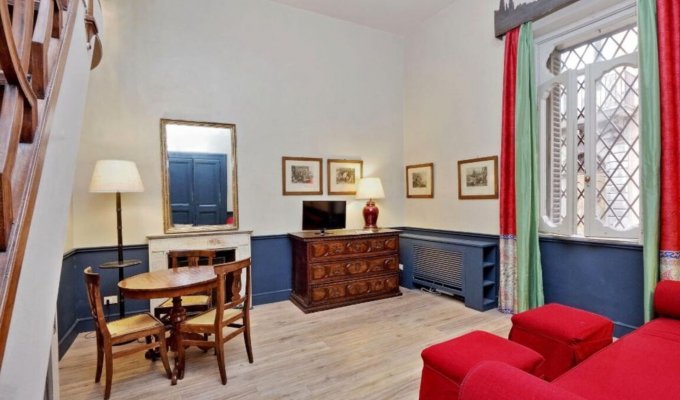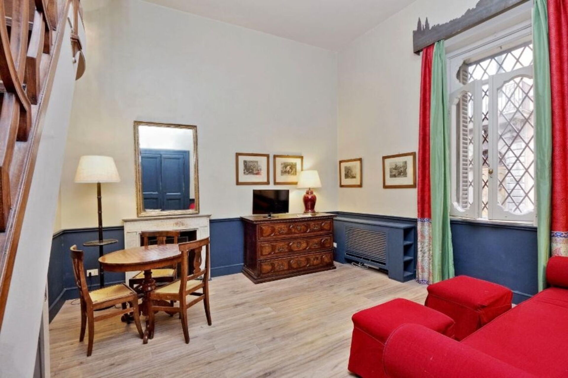 L'appartement se compose d'une grande pièce à vivre ouverte avec une fenêtre donnant sur la rue piétonne Via Gregoriana.