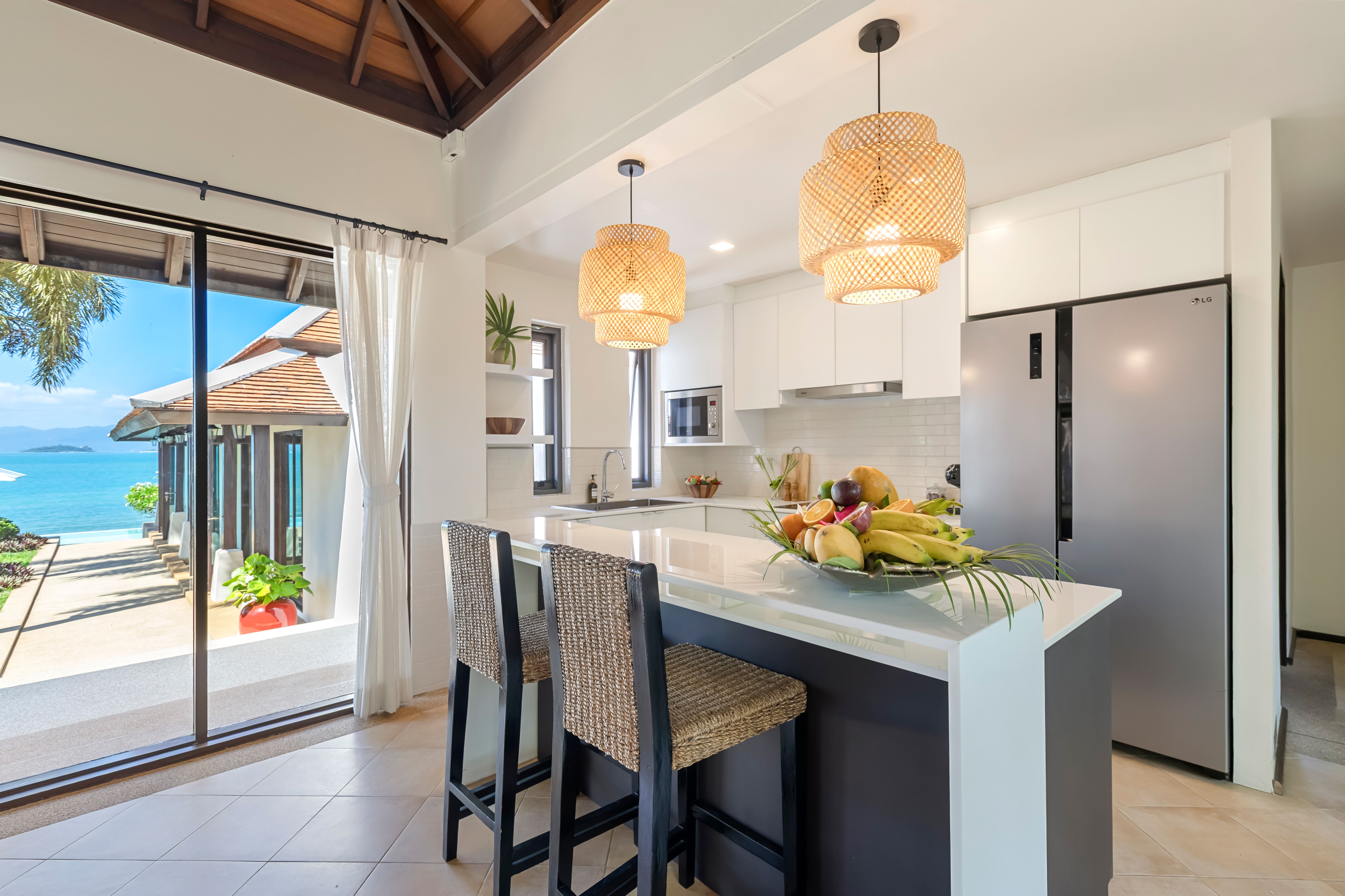 En traversant un jardin luxuriant, vous entrez dans un salon élégant entièrement climatisé, parfaitement relié à une cuisine ouverte. La Villa Bacaya bénéficie d’un emplacement idéal sur la plage de Bangrak — un quartier prisé mêlant charme thaïlandais et style européen. Vous serez à proximité immédiate d’excellents restaurants locaux et internationaux, idéalement situé entre les quartiers animés de Bophut et Chaweng.
