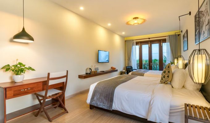 Cette villa située à Hoi An propose des chambres familiales confortables avec salle de bains privative, balcon et équipements modernes. Chaque chambre dispose de la climatisation, d’un bureau et d’une connexion Wi-Fi gratuite.