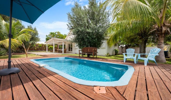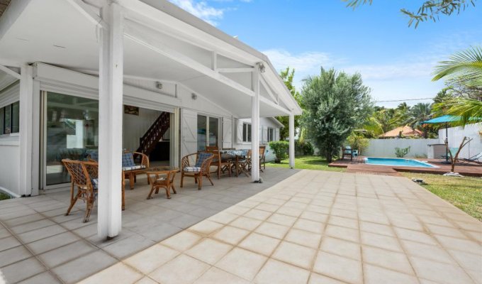 Elle est entièrement meublée et équipée, avec un grand jardin arboré et exotique donnant sur la piscine.