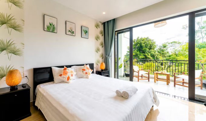 Notre élégante villa avec piscine est située à seulement 900 m de la vieille ville historique de Hoi An. Restaurants, cafés et supermarchés sont facilement accessibles à pied. La villa propose 7 chambres confortables avec salle de bain privative, climatisation et télévision. Grande piscine privée dans le jardin tropical. Wi-Fi très rapide (450/400 Mbit/s). Idéal pour les familles, les groupes, les nomades numériques ainsi que pour les événements d’entreprise et d’équipe. Parfait pour des vacances détendues, un « workation » ou des congés collectifs.