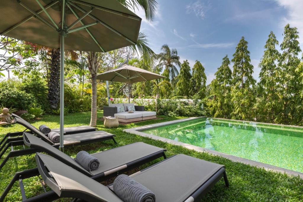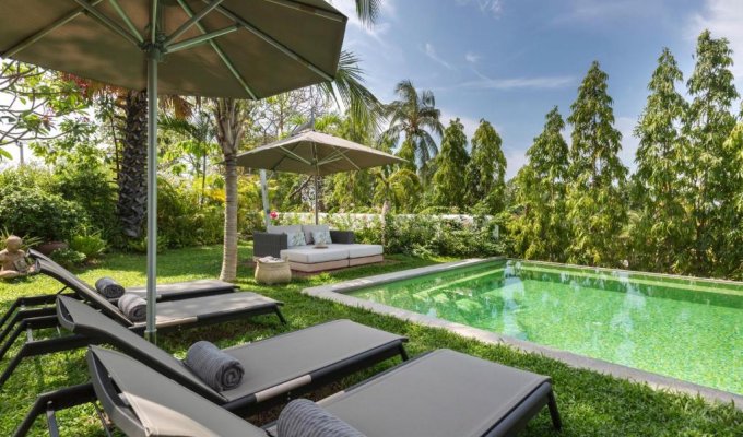 Commencez votre journée par un petit-déjeuner sur la terrasse ombragée surplombant le jardin tropical, puis profitez du soleil au bord de la piscine ou partez à la découverte des plages, des cascades et des temples à proximité.