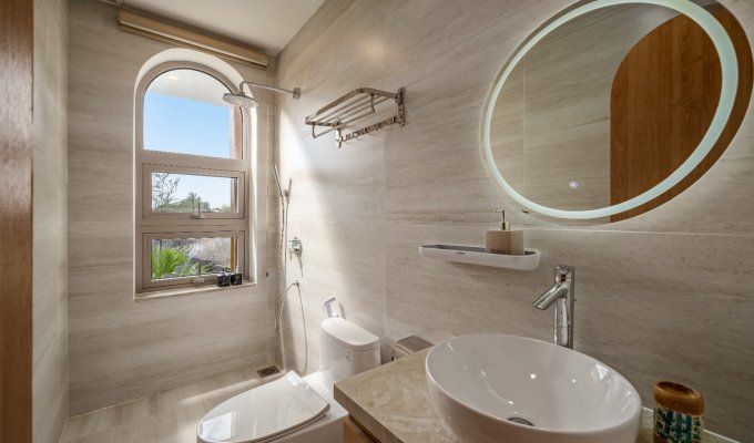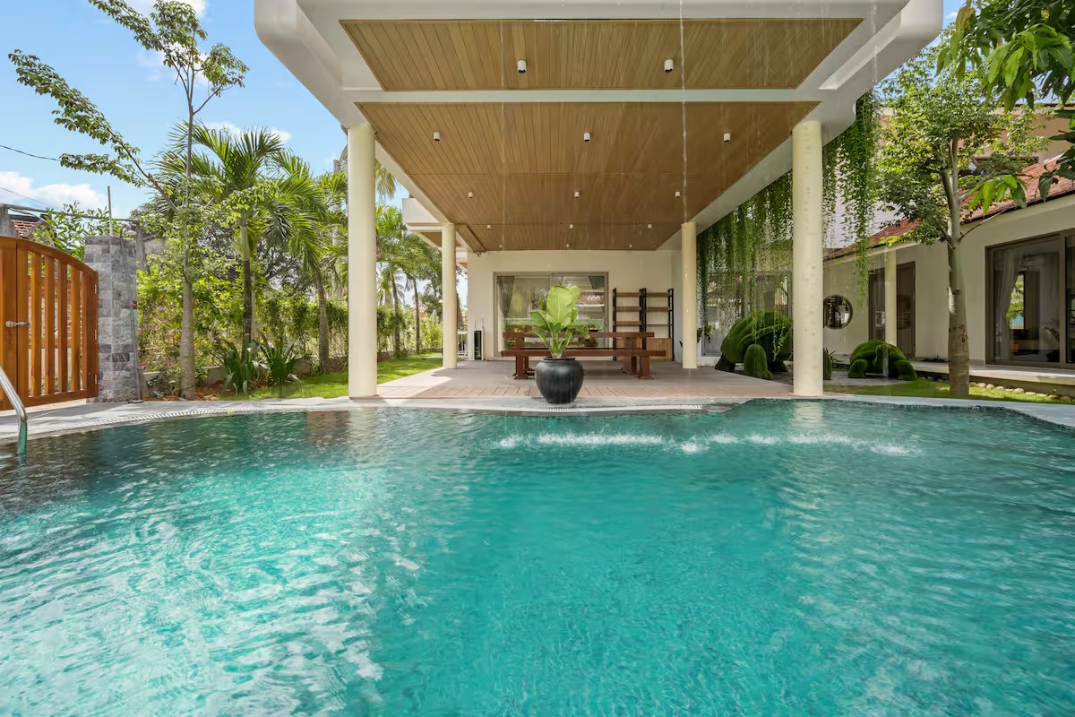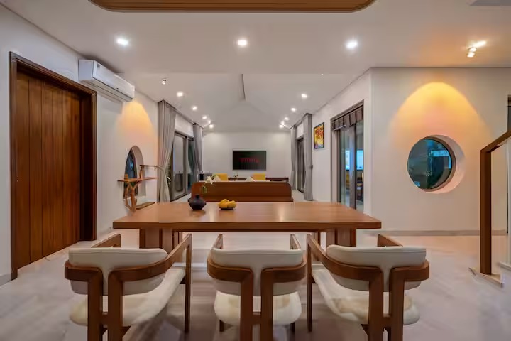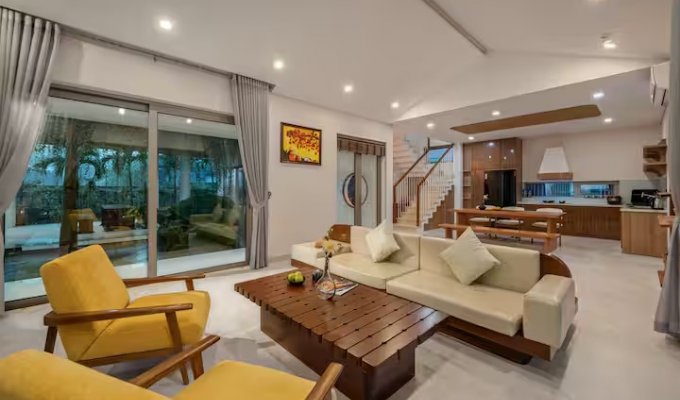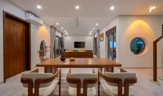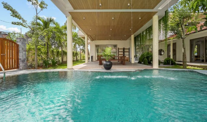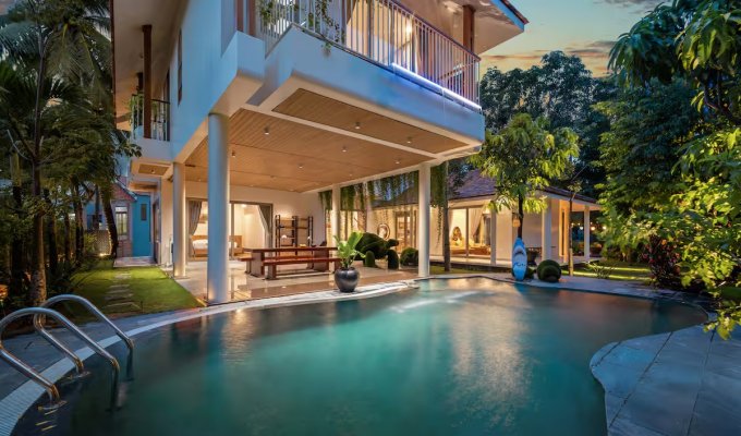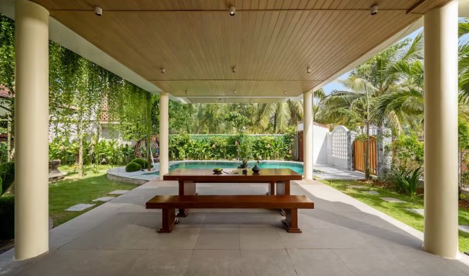 Emplacement calme au bord de la plage, à seulement 30 mètres de la plage de sable. Les voyageurs ont l’usage exclusif de toute la villa, de la piscine privée et du jardin tropical – il n’y a pas d’espaces communs. Wi-Fi très rapide (450/400 Mbps), parfait pour le travail à distance. Service de ménage quotidien inclus. Arrivée flexible sous réserve des disponibilités. Assistance pour le transfert aéroport, la location de scooters et les visites disponibles. Restaurants et cafés de plage à proximité. Parking gratuit sur place. Quartier calme – les fêtes et la musique forte la nuit ne sont pas autorisées.