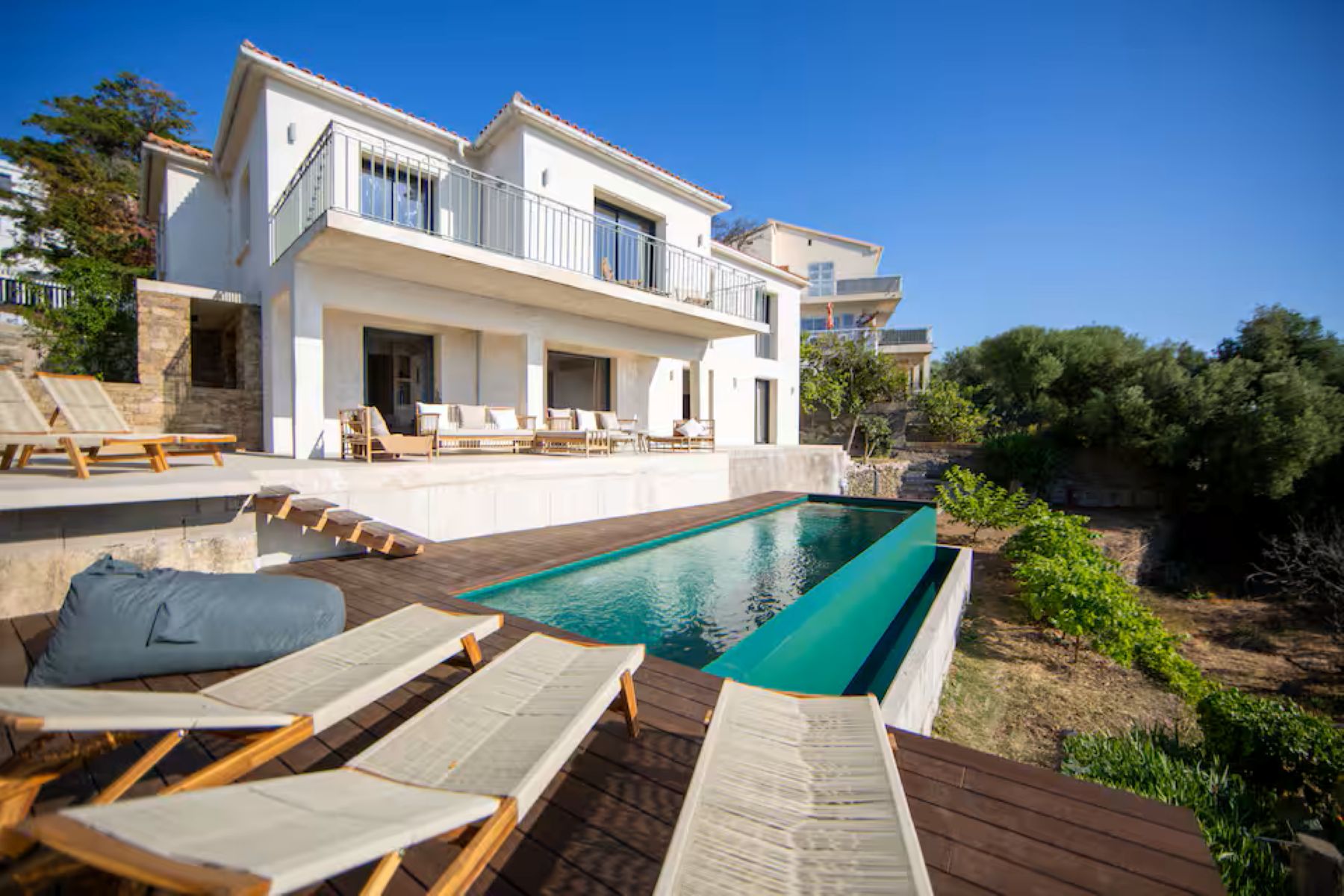 Découvrez notre villa en Corse, à proximité de Bastia, offrant une vue imprenable sur la mer. Entièrement rénovée, elle dispose de 5 chambres spacieuses, dont 3 suites avec salles de bains privatives, et peut accueillir jusqu’à 10 personnes. Profitez de moments de détente sur la terrasse, au bord de la piscine à débordement et dans les espaces extérieurs aménagés. Idéale pour des vacances en famille ou entre amis, cette villa allie confort moderne et charme méditerranéen.