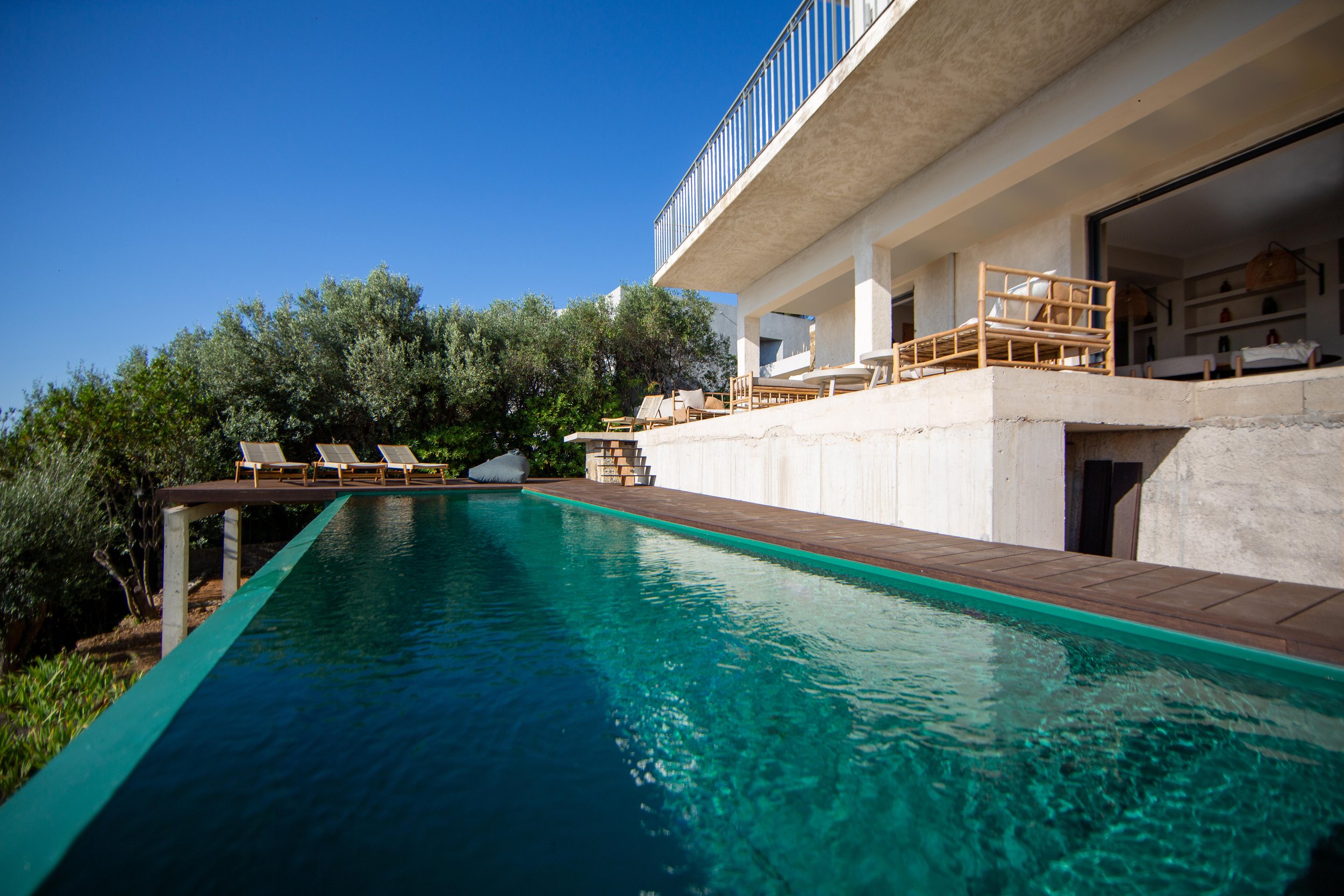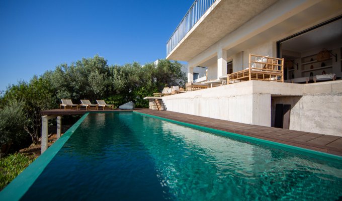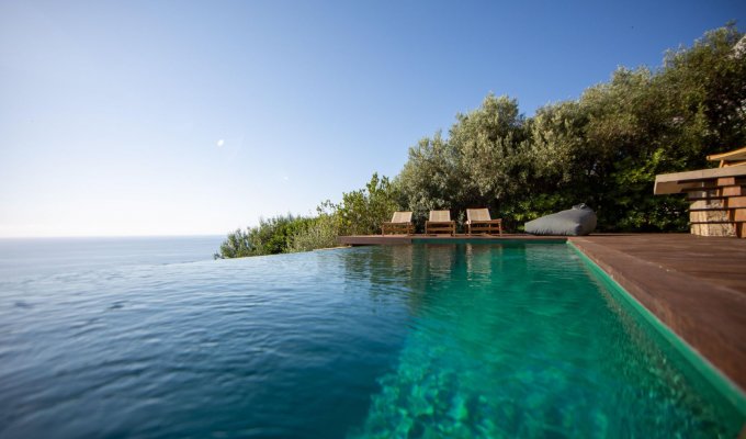 Piscine en contrebas avec vue sur la mer