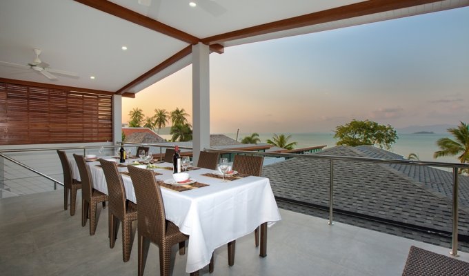 Entourée de jardins tropicaux paysagers et située directement sur la plage, notre villa offre aux voyageurs une intimité exclusive. Agréable à l'œil, moderne et très spacieuse, cette villa de 7 chambres située sur la plage de Koh Samui allie luxe et confort, ainsi que quelques touches traditionnelles thaïlandaises en accord avec l'emplacement, avec une piscine à débordement de 20 mètres donnant sur la plage et les îles environnantes…