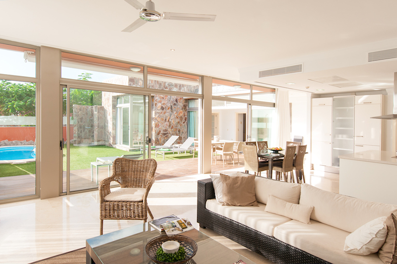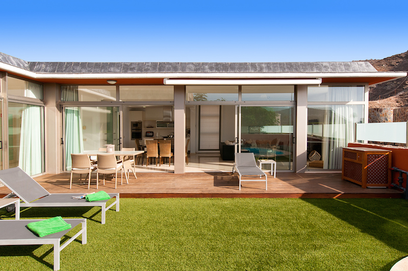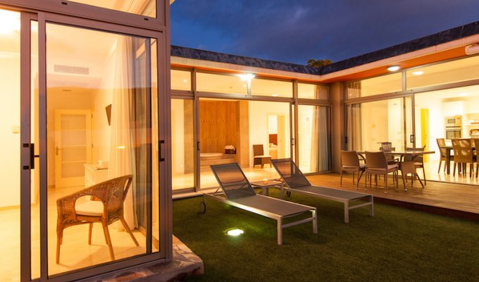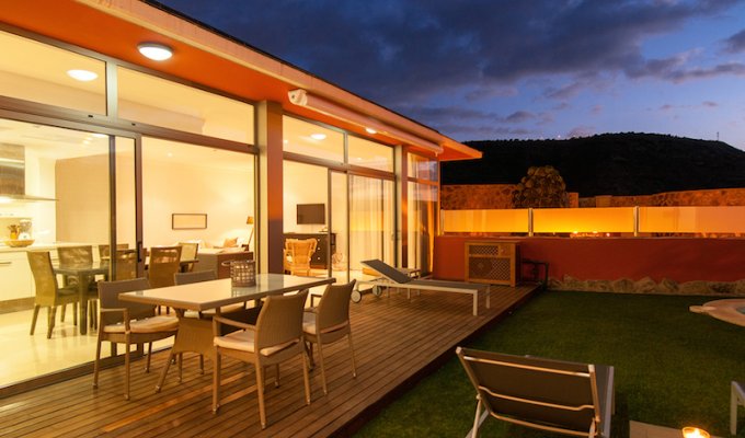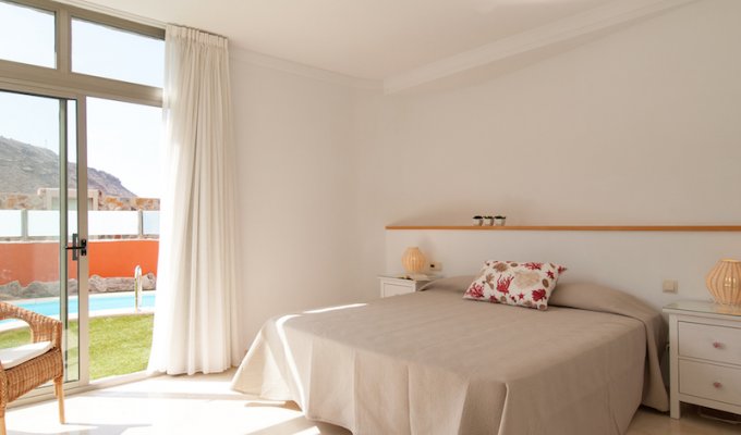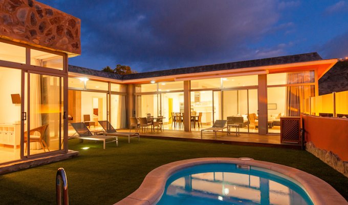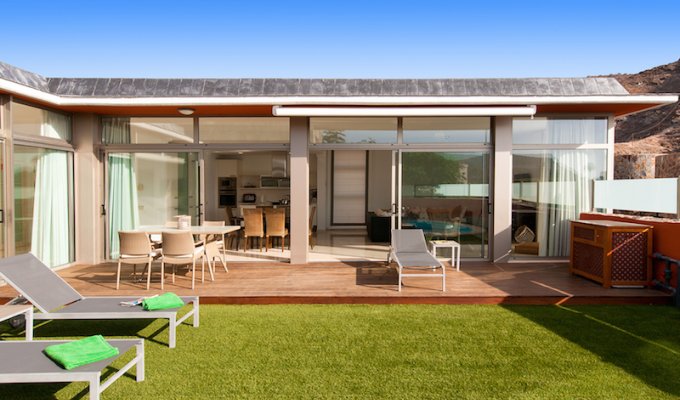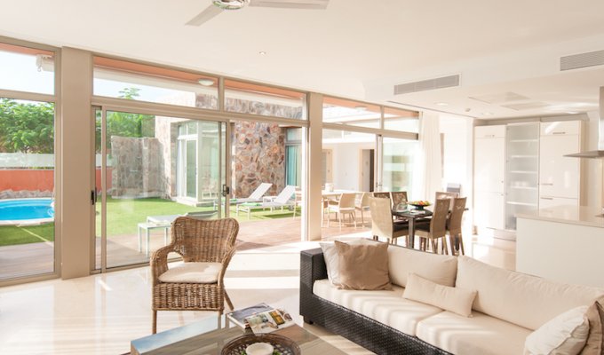 Location villa Grande Canarie Puerto Rico, luxueuse, dans un terrain de golf au sud de Gran Canaria (40 minutes en voiture de l'aéroport). À seulement 1 km de l'océan Atlantique. Piscine et vue mer.