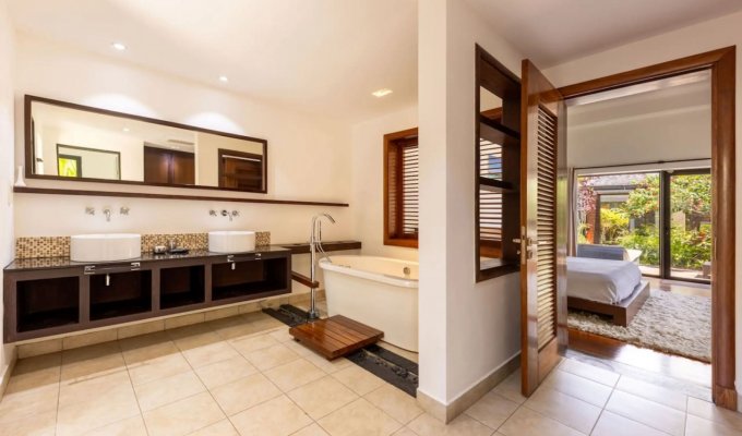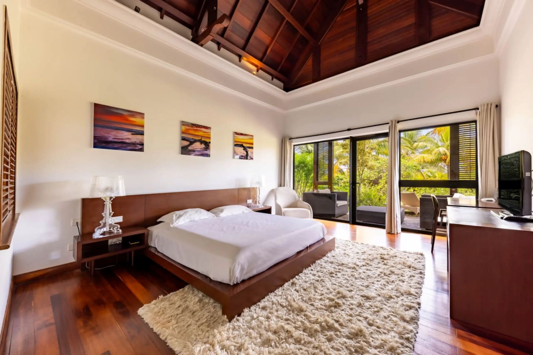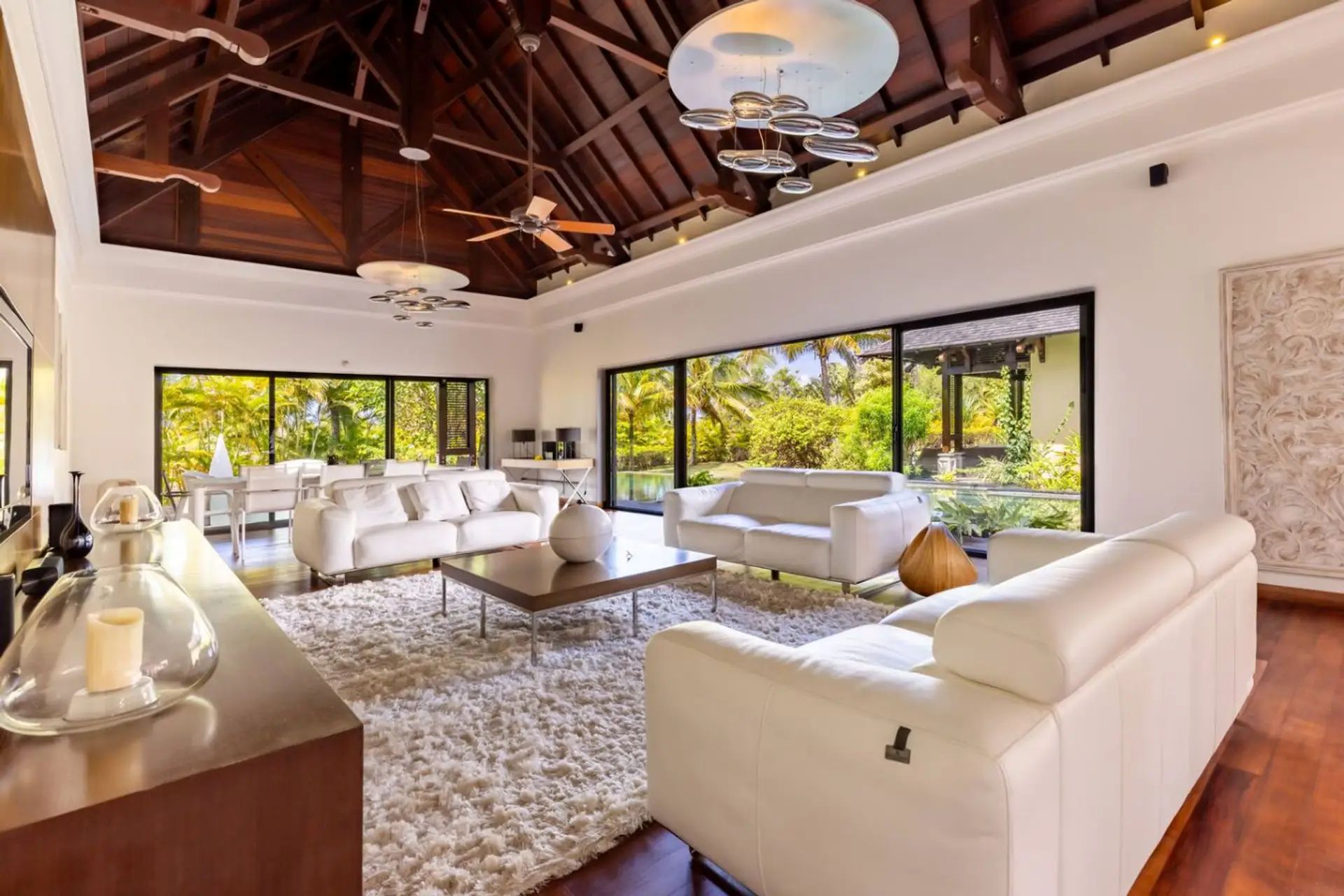 Les chambres climatisées disposent de salles de bains attenantes, dont certaines avec douches extérieures pour une expérience immersive au cœur de la nature. Le vaste espace de vie, élégant et lumineux, comprend un salon raffiné, une salle à manger ouverte et une cuisine moderne entièrement équipée.