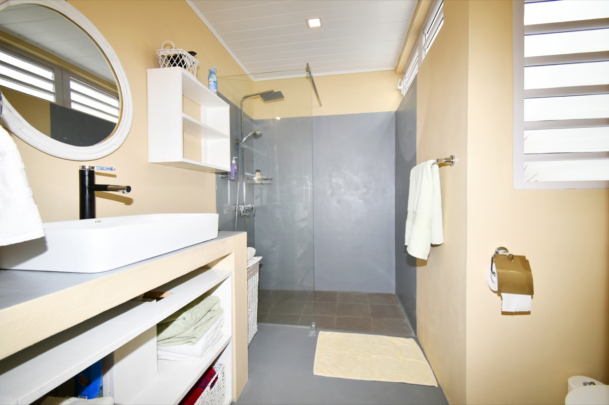 2 salles de bain : douche, toilettes, lavabo, serviettes de toilette