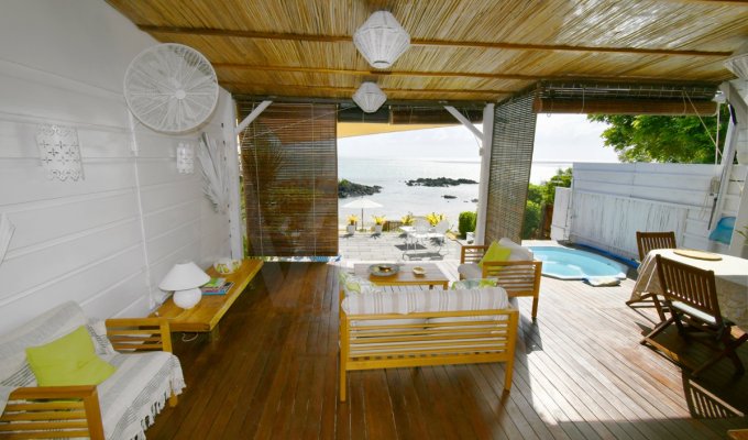 Le bungalow est une charmante villa pieds dans l’eau située directement sur la plage de Calodyne, au nord de l’île Maurice, à seulement 20 minutes de Grand Baie.
