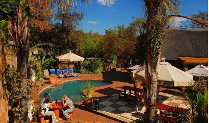 Le lodge dispose d'un restaurant et d'un bar, réception, salon, un Boma (vous serez assis autour d'un feu de brousse ouvert, se détendre et profiter de l'observation des étoiles), chapelle (avoir votre mariage ici!) Ce lodge peut offrir une excellente cuisine internationale dans l'atmosphère chaleureuse et conviviale du restaurant de plein air et des lapa-zones.