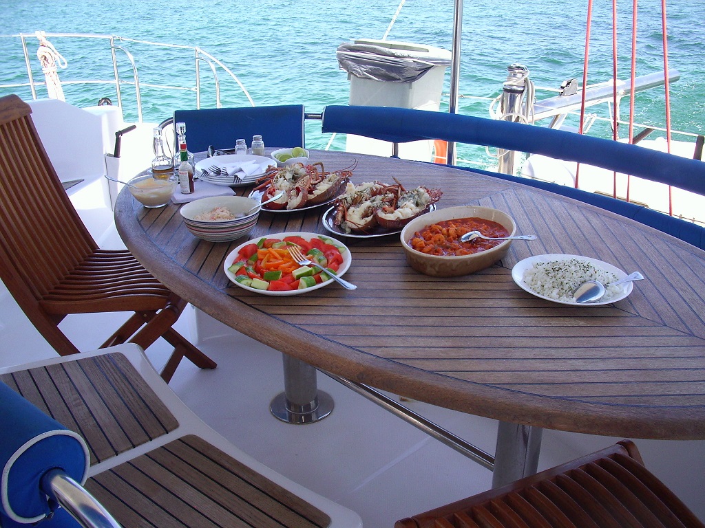 Ce catamaran ELEUTHERA 60 FOUNTAINE PAJOTavec équipage est équipé d’une cuisine, annexe, 2 kayak, matériel de pêche, palme, masque tube, Wakeboard.