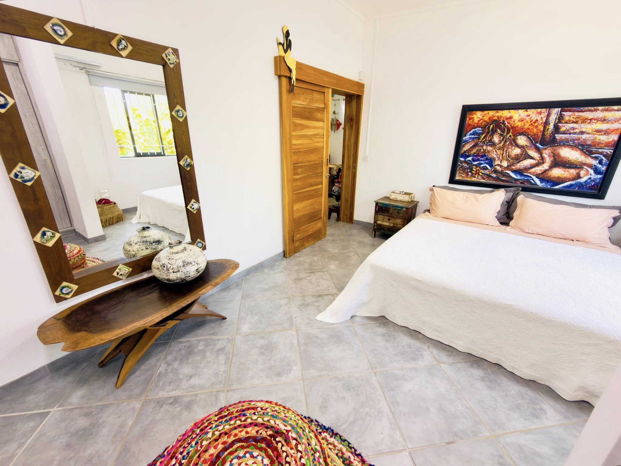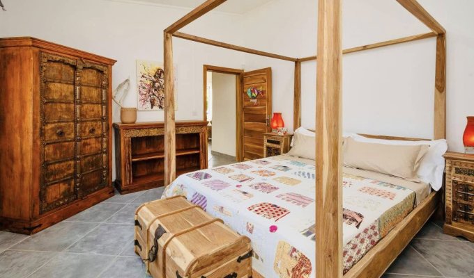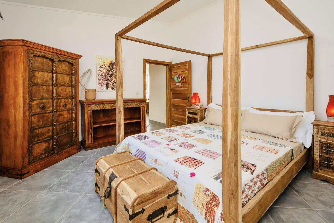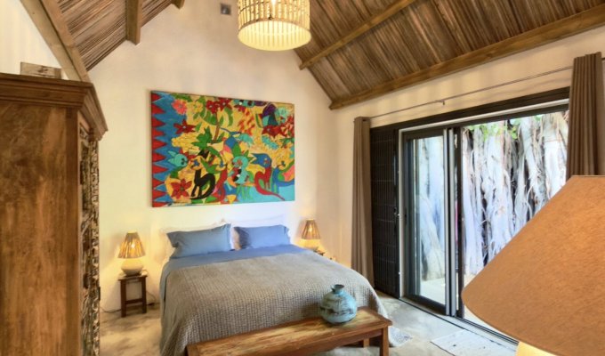 Trois chambres dans la villa principale, chacune avec sa propre salle de bain privative.