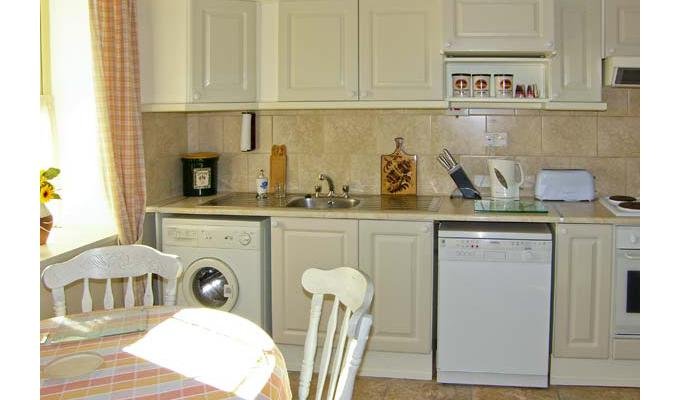 Appartement B: 2 chambres à coucher pouvant accueillir jusqu'à 7 personnes. Cette ancienne écurie reconvertie a sa propre entrée séparée à gauche. Cette unité est d'environ 160 mètres carrés de taille, y compris la véranda jardin. Il est également une unité de deux chambres à coucher (une chambre avec douche attenante), avec l'ajout d'un canapé-lit double de premier ordre dans le salon, pour les invités supplémentaires. La deuxième chambre a un lit double et un lit simple. Il y a un salon confortable, avec une cuisine-salle à manger séparée. La salle de bains principale bien aménagée est à l'étage. Il y a une très grande véranda d'été à l'arrière de l'unité, ce qui rend une salle de jeux, salle à manger et espace de détente idéal.